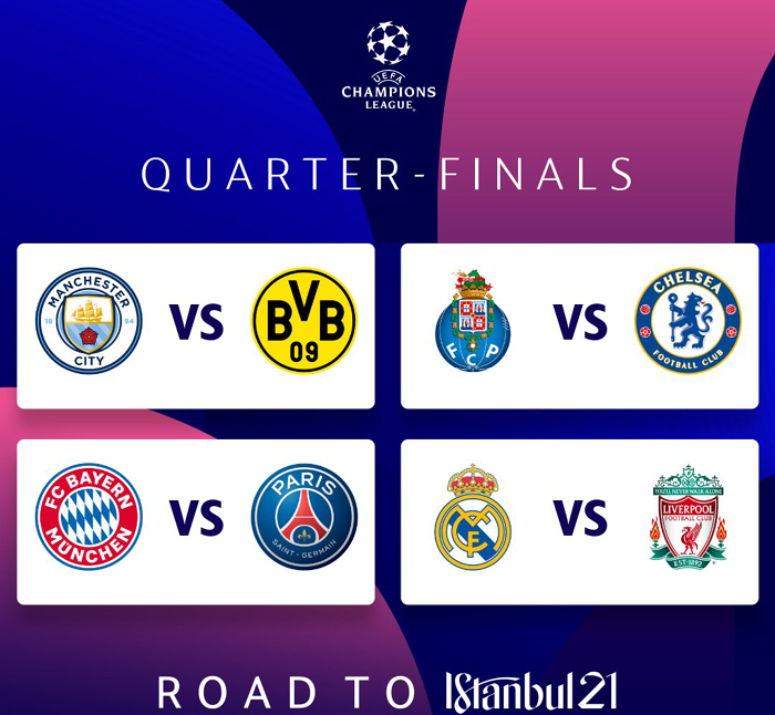 Chelsea và 7 CLB còn lại đã biết được đối thủ của mình ở vòng tứ kết Cúp C1 châu Âu/Champions League 2020/21. Theo đó, The Blues đấu với Porto trong khi Bayern Munich và PSG phải loại nhau. Real Madrid tái so tài cùng Liverpool còn Man City chạm trán Dortmund.