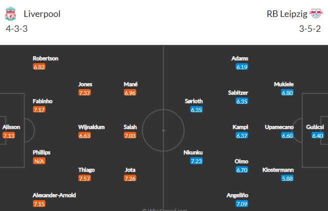 Đội hình dự kiến Liverpool vs RB Leipzig
