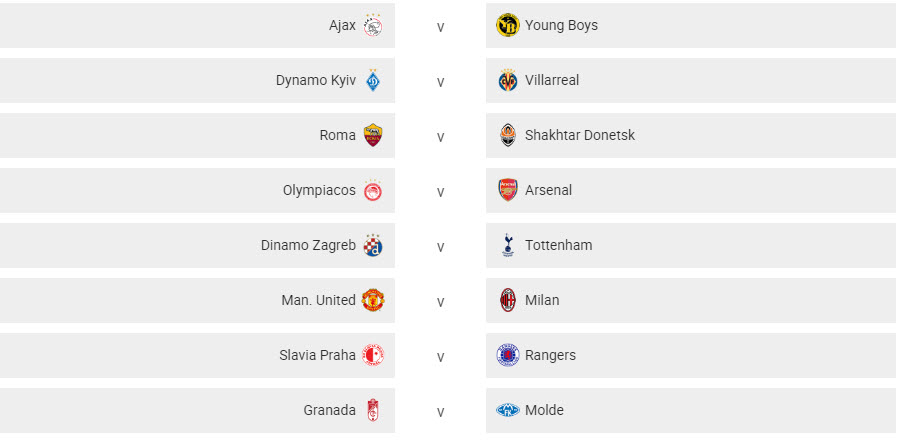 Những ông lớn khác như Arsenal, Tottenham, AC Milan, AS Roma... đều có vé vào vòng 1/8. Bất ngờ nhất là việc Leicester để thua sốc 0-2 trước Slavia Praha ngay trên sân nhà King Power qua đó dừng bước ở vòng 1/16. Napoli cũng bị loại dù thắng Granada 2-1 ở trận lượt về nhưng thua chung cuộc 2-3.