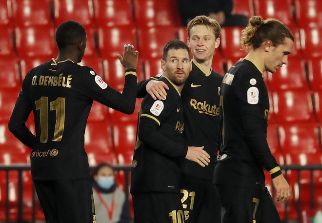 Ngược dòng thắng 5-3, Barca thẳng tiến vào bán kết Cúp Nhà vua Tây Ban Nha 2020/21. Ngày 8/2 tới, Messi và các đồng đội sẽ trở lại đấu trường La Liga để đối đầu chủ nhà Real Betis.