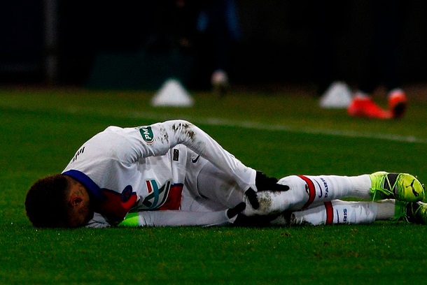Trước đó, Neymar đã phải nhận 2 pha tắc bóng liên tiếp của cầu thủ Caen. Anh cố đứng dậy thi đấu tiếp ở tình huống thứ nhất nhưng đến pha bóng thứ 2, chân sút sinh năm 1992 đã phải nằm sân và nhờ sự giúp đỡ của nhân viên y tế.