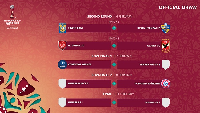 Đội thắng trong cặp đấu giữa Tigres UALN vs Ulsan Hyundai sẽ gặp nhà vô địch Nam Mỹ ở bán kết. Hai đội bóng Brazil, Palmeiras hoặc Santos sẽ đăng quang ở Cúp C1 Nam Mỹ (Copa Libertadores) khi gặp nhau ở trận chung kết vào ngày 30/1 tới,