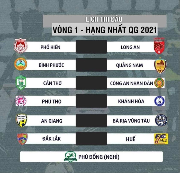 Lịch thi đấu vòng 1 giải Hạng Nhất 2021