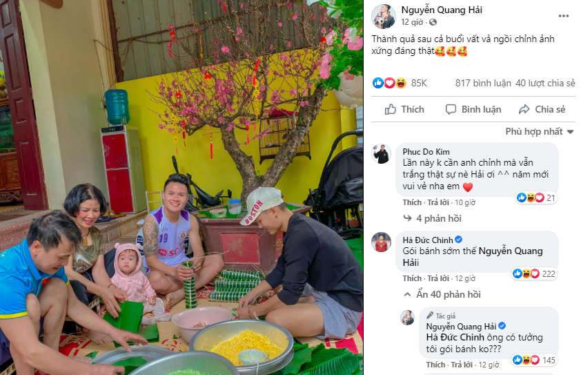Nghi vấn kể trên gần như đã có lời giải đáp khi Quang Hải trả lời bình luận của tiền đạo Hà Đức Chinh: "Ông có tưởng tôi gói bánh không???".