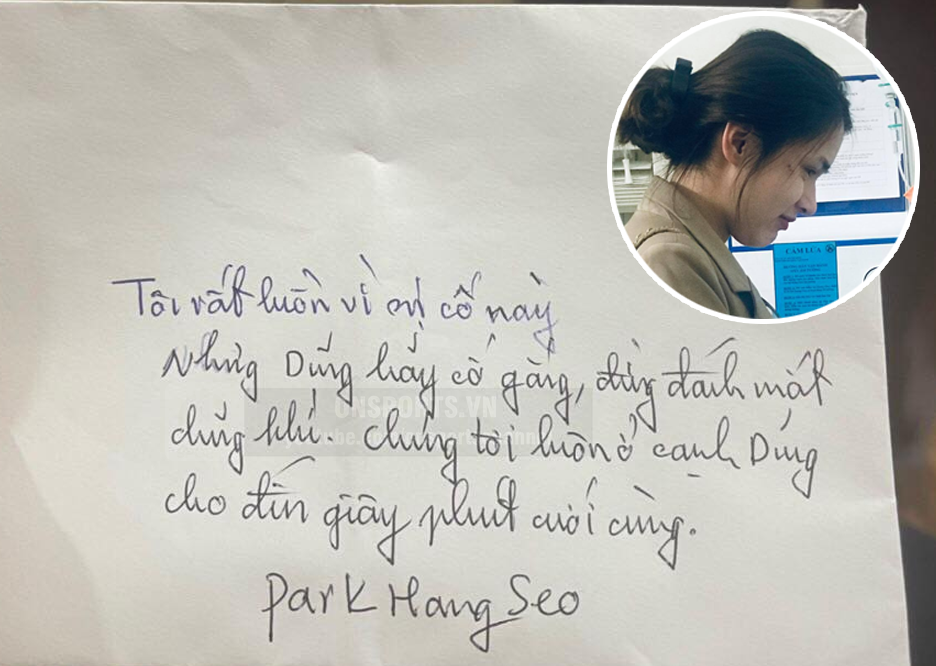 Ngay sau khi trận đấu giữa TP.HCM vs Hà Nội kết thúc, thuyền trưởng ĐT Việt Nam cũng đến thẳng bệnh viện nơi Hùng Dũng điều trị để thăm hỏi và xem tình hình thực tế. Không được gặp trực tiếp cậu học trò, thầy Park đã nhờ người viết thư tay.