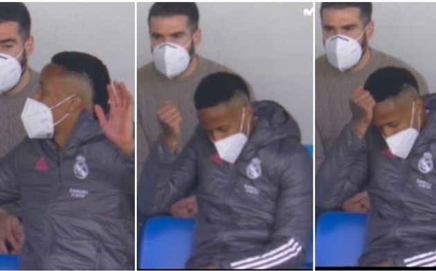 Ngồi trên ghế dự bị chứng kiến thất bại của đội nhà, Militao đã không khỏi dằn vặt bản thân. Anh liên tục phân bua với các đồng đội ngồi cạnh rồi thậm chí còn tự lấy tay cốc đầu.