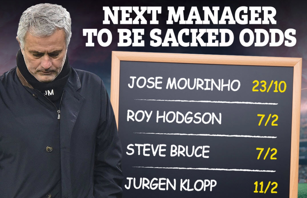 Được biết, HLV Mourinho đang là cái tên có nguy cơ bị sa thải cao nhất tại Ngoại hạng Anh. Cụ thể, khả năng chiến lược gia người Bồ bị sa thải được hãng cá cược xứ sở sương mù đánh giá là 23/10 (đặt 10 ăn 23).