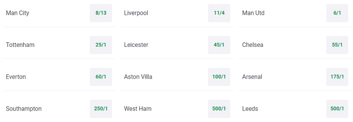 Tỷ lệ cược mới nhất cho chức vô địch Ngoại hạng Anh 2020/21 theo Paddy Power