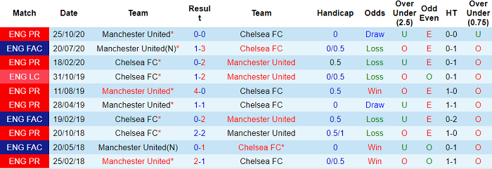 Trong vòng 6 lần chạm trán MU gần đây tại giải Ngoại hạng Anh, Chelsea không thể thắng dù chỉ 1 lần. Thành tích cụ thể của Quỷ đỏ trong 6 trận đấu này là 3 chiến thắng và 3 trận hoà.
