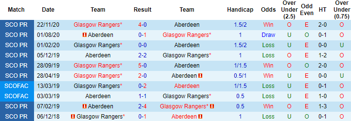Aberdeen bất bại 5 trên 7 lần tiếp đón Rangers gần đây trên sân nhà (thắng 1, hòa 4). 6 vòng đấu gần đây tại giải VĐQG Scotland, Aberdeen bất bại với 3 thắng, 3 hòa, giữ sạch lưới 4 trận. Trên sân nhà 7 trận vừa qua, Aberdeen thắng 5, hòa 2 và thắng 6 lần theo kèo châu Á.
