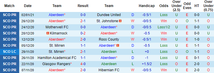 + Thống kê 10 trận gần nhất của Aberdeen