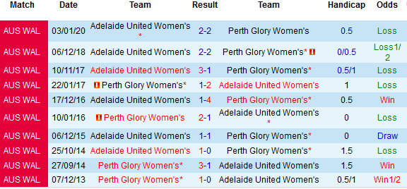 + Soi tỷ lệ kèo châu Á: Thành tích đối đầu sân khách của Perth Glory (W) rất ấn tượng với 8 trong 11 trận bất bại gần đây. Trong khi đó, Adelaide Utd (W) vừa thua kèo 3 trong 4 trận gần nhất.