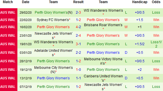 Phong độ gần đây của đội chủ nhà cũng rất thất vọng khi họ bị đánh bại tới 14 lần, hòa 1 và thắng 5 trong 20 trận gần nhất. Trong khi đó, Perth Glory (W) đang là cái tên đáng hy vọng khi vừa có 3 trong 4 vòng gần đây giành chiến thắng.
