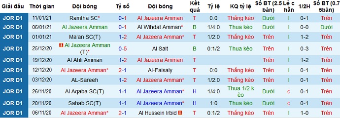 + Thống kê 10 trận gần nhất của Al Jazeera