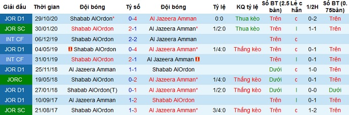 + Lịch sử đối đầu Al Jazeera vs Shabab Al Ordon