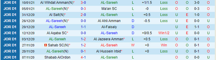 + Thống kê 10 trận gần nhất của Al Sareeh