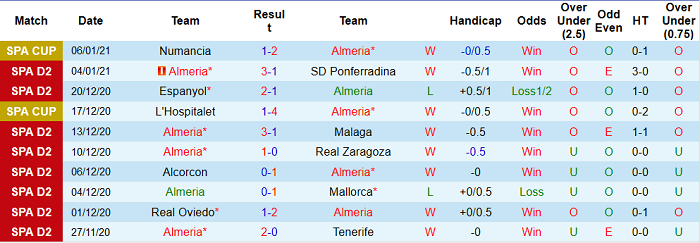 Almeria đang sở hữu thành tích khá ổn trên mọi đấu trường. Tại Segunda Division, họ thu về 41 điểm sau 20 trận và là 1 trong 3 đội có thành tích tốt nhất. Tại Cúp Nhà vua Tây Ban Nha, Almeria lần lượt loại CE L'Hospitalet và Numancia để giành quyền tham dự vòng 3.