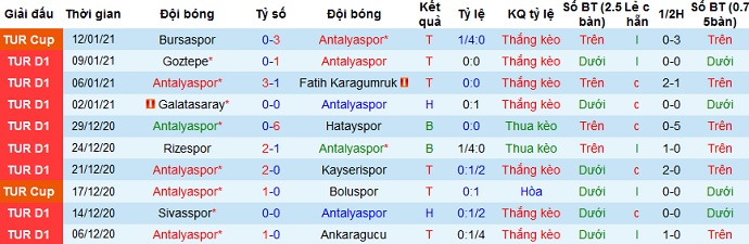 + Thống kê 10 trận gần nhất của Antalyaspor