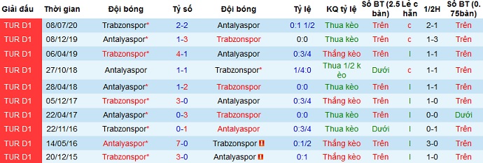 + Lịch sử đối đầu Antalyaspor vs Trabzonspor