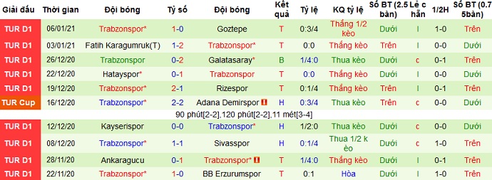 + Thống kê 10 trận gần nhất của Trabzonspor