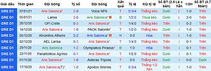 Ở 5 vòng đấu gần đây Aris có được 3 trận thắng, hòa 1 và để thua 1. Trên sân nhà thành tích gần đây của đội bóng cũng rất tốt khi ở 5 trận gần nhất tại đây Aris thắng 4 và chỉ để thua trước chính đội đầu bảng Olympiakos với tỷ số 1-2.