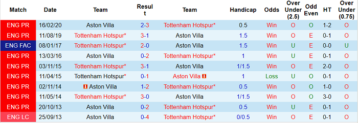 Tỷ lệ kèo Aston Villa vs Tottenham