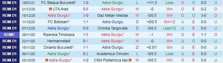 Astra Giurgiu khép lại năm 2020 với phong độ chói sáng khi bất bại 7 trận đã đá tại mọi đấu trường tham dự. Dẫu vậy, mọi chuyện nhanh chóng đi theo chiều hướng xấu trong những ngày đầu tiên năm 2021. Cụ thể, họ đã nhận thất bại với tỷ số 0-3 trước đội đầu bảng Steaua Bucuresti tại giải VĐQG Romania.