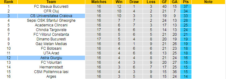 Đêm nay, Astra Giurgiu tiếp tục có thêm một trận đấu khó khăn khi chạm mặt đội bóng đang đứng thứ 3 là Universitatea Craiova. Vẫn biết thầy trò HLV Neagoe được chơi trên sân nhà song với đẳng cấp thua kém, nhiều khả năng Astra Giurgiu sẽ nhận thêm một kết quả trắng tay.