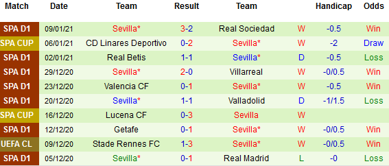 + Thống kê 10 trận gần nhất của Sevilla