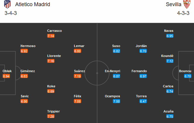 Đội hình dự kiến Atletico Madrid vs Sevilla