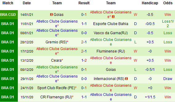 + Thống kê 10 trận gần nhất của Atletico GO