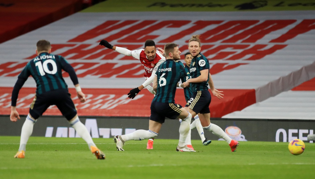 Aubameyang là tác giả 2 pha lập công giúp Arsenal vươn lên dẫn trước 2-0 từ phút 41 trong cuộc tiếp đón Leeds United tại vòng 24 Ngoại hạng Anh vào đêm qua. Đến phút thứ 2 của hiệp 2, tiền đạo người Gabon hoàn tất cú hat-trick giúp Pháo thủ dẫn trước 4-0.