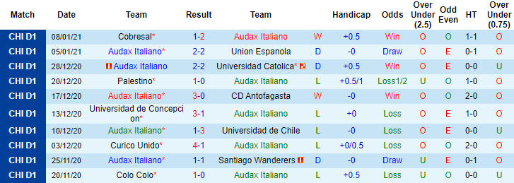 + Thống kê 10 trận gần nhất của Audax Italiano