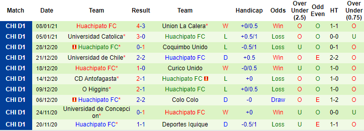 + Thống kê 10 trận gần nhất của Huachipato