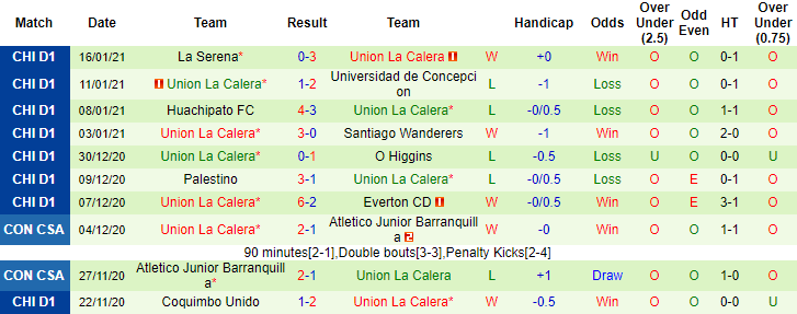+ Thống kê 10 trận gần nhất của Union La Calera