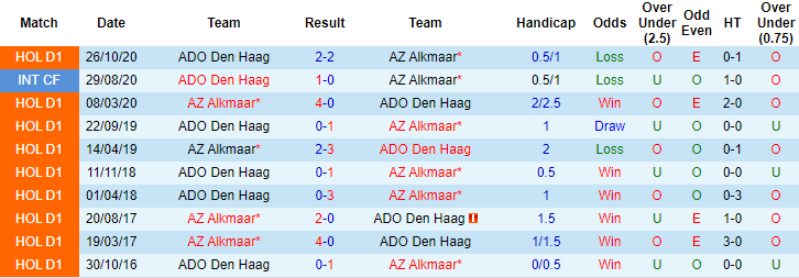 Trận đấu sắp tới được chơi trên sân nhà nên về mặt lý thuyết, AZ Alkmaar càng có thêm sự tự tin hướng về chiến thắng. 16 lần tiếp đón ADO Den Haag trước đây, AZ Alkmaar thắng 11, hòa 2 và chỉ để thua 3 trận. Mùa giải trước ADO Den Haag bị vùi dập với tỷ số 0-4 khi hành quân đến AZ Alkmaar.