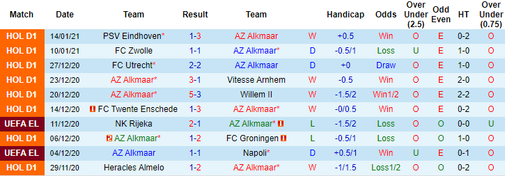 AZ Alkmaar thi đấu vào phom sau chiến dịch vòng bảng Europa League. 6 trận gần đây tại giải VĐQG Hà Lan, AZ Alkmaar bất bại với 4 chiến thắng, 2 trận hòa. Trận gần nhất AZ Alkmaar đánh bại PSV Eindhoven 3-1 ngay trên sân khách, qua đó rút ngắn khoảng cách với Top 4 xuống còn 3 điểm.
