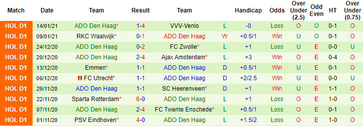 + Thống kê 10 trận gần nhất của ADO Den Haag