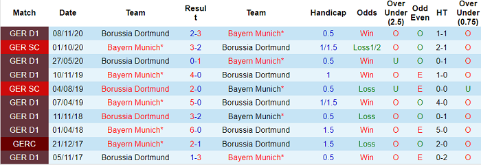 Quý vị độc giả có thể click vào phần màu Đỏ để xem chi tiết Lịch sử đối đầu Bayern Munich vs Dortmund.