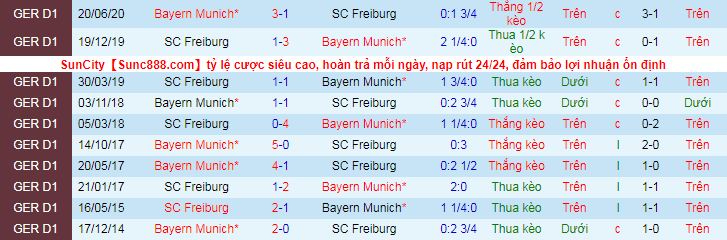 + Lịch sử đối đầu Bayern Munich vs Freiburg