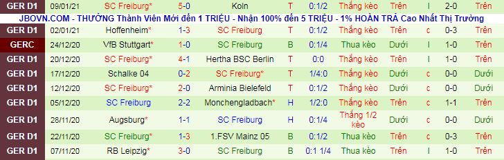 + Thống kê 10 trận gần nhất của Freiburg