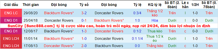 6/7 trận sân khách gần nhất của Doncaster kết thúc với không dưới 3 bàn thắng. 5/6 trận sân nhà vừa qua của Blackburn chứng kiến từ 3 pha lập công trở lên. 2/3 lần đối đầu gần nhất giữa Blackburn và Doncaster cũng xuất hiện từ 3 bàn thắng trở lên.