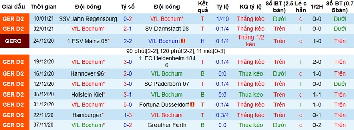 + Lịch sử đối đầu Bochum vs Nürnberg