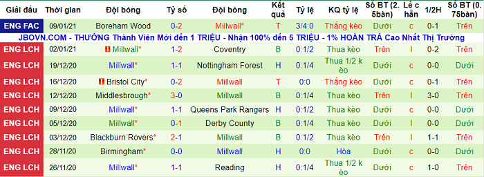 - Thống kê 10 trận gần nhất của Millwall