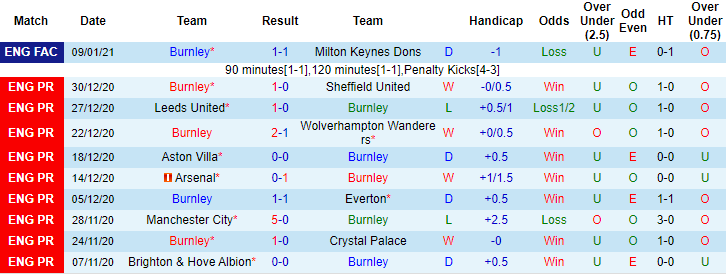 Bên phía đối diện, Burnley lại đang cho thấy khả năng tận dụng tốt lợi thế về mặt sân bãi. 4 trận tiếp khách gần đây trong khuôn khổ Ngoại hạng Anh, Burnley bất bại với 3 chiến thắng, 1 trận hòa, toàn thắng cả 4 trận theo kèo châu Á.