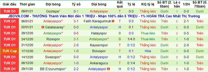 - Thống kê 10 trận gần nhất của Antalyaspor