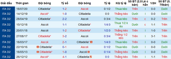 + Lịch sử đối đầu Cittadella vs Ascoli