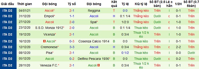 + Thống kê 10 trận gần nhất của Ascoli