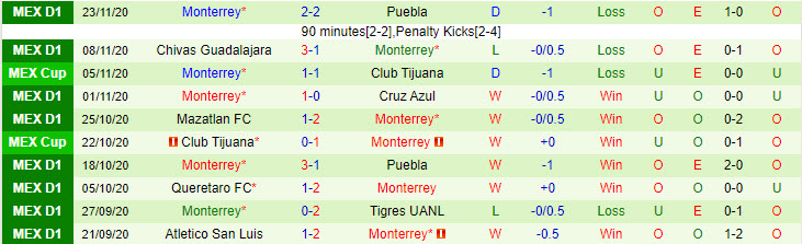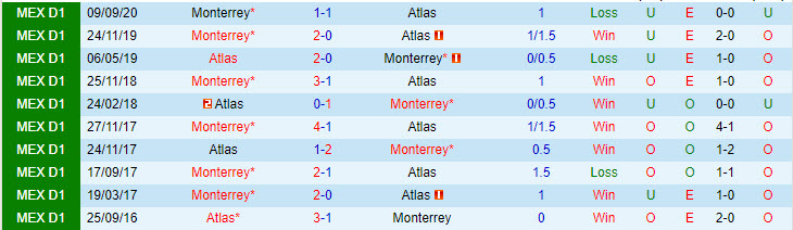 Phong độ và thống kê đối đầu Club Atlas - Monterrey gần đây: