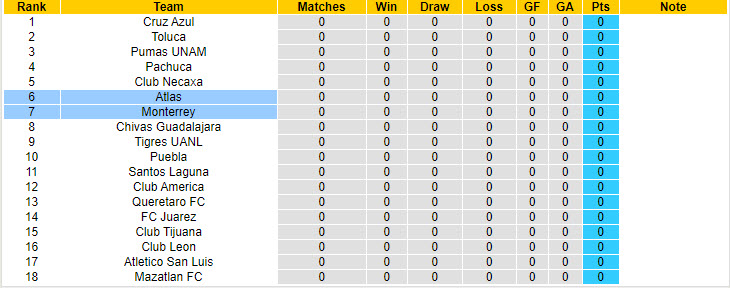 Trận đấu sáng mai càng thêm khó khăn với Club Atlas khi đối thủ của họ là Monterrey. Trái ngược với đối thủ, Monterrey kết thúc giai đoạn lượt đi với vị trí thứ 5 – vị trí có vé tham dự vòng play off tranh vé đá tứ kết của Apertura.